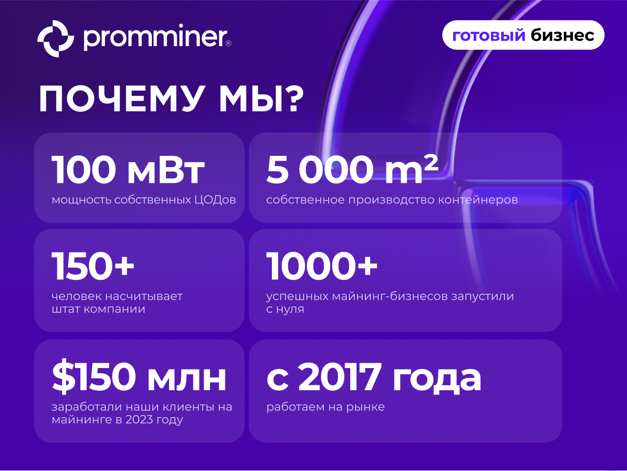 — Запустили более 1000 успешных майнинг-бизнесов с нуля.