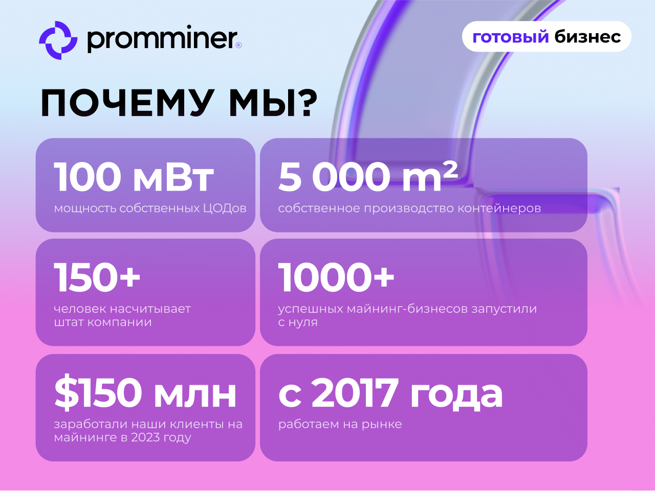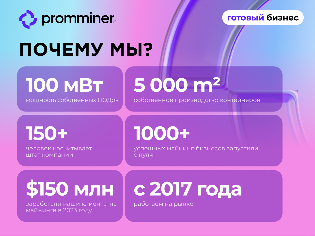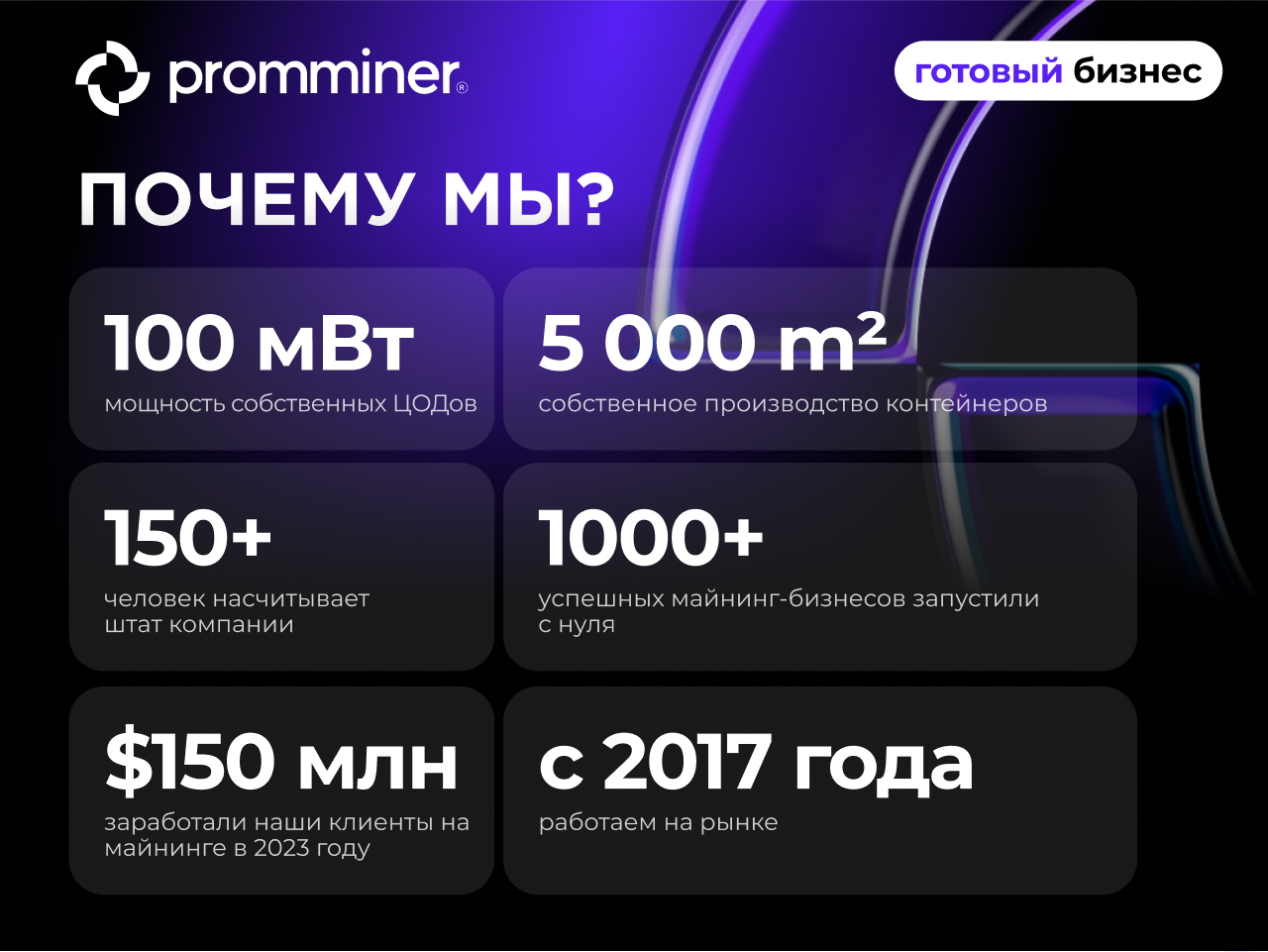 — Запустили более 1000 успешных майнинг-бизнесов с нуля.